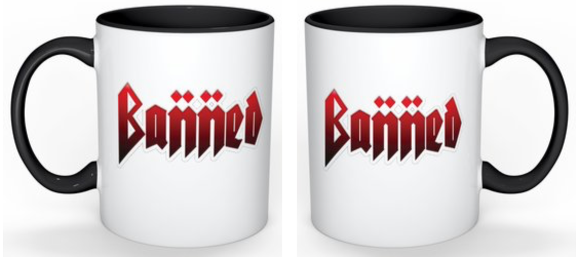 11 oz. ceramic unisex coffee mug with classic Banned Metal Logo.