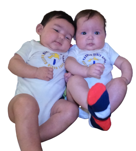 Models Carla and Zoë are 4 month and wear 3 month size