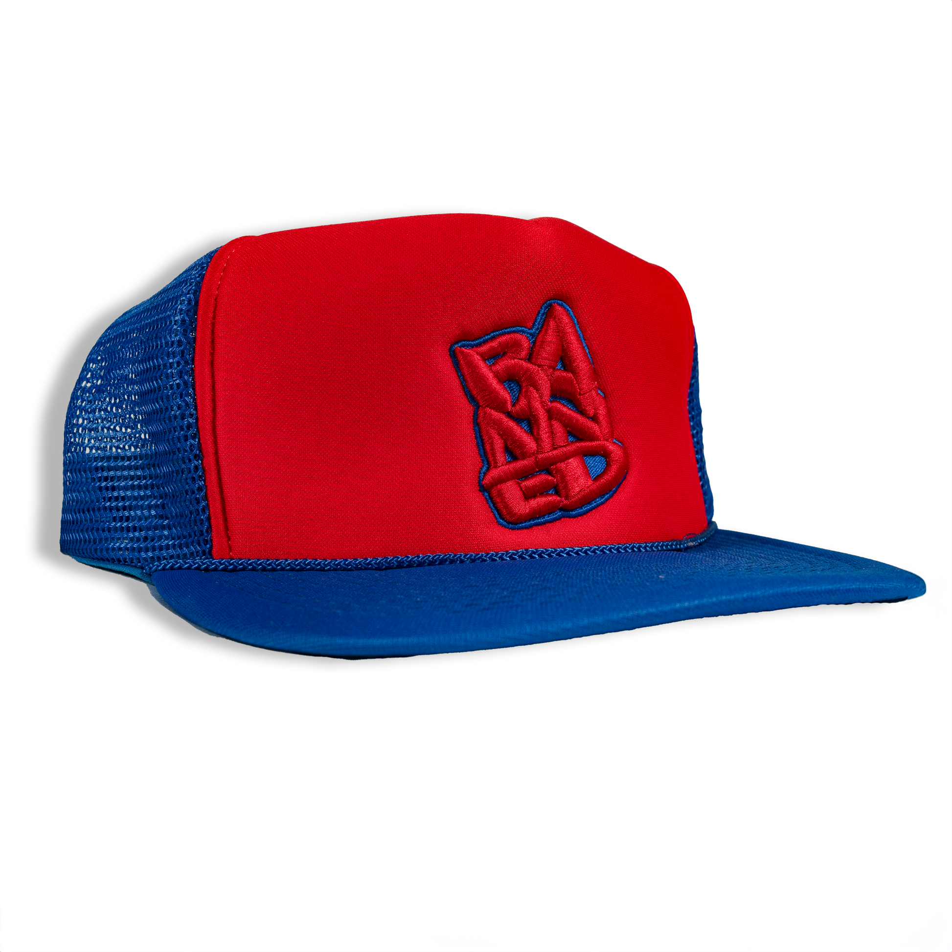 BANNED Stacked Embroidered Red Blue Mesh Cap