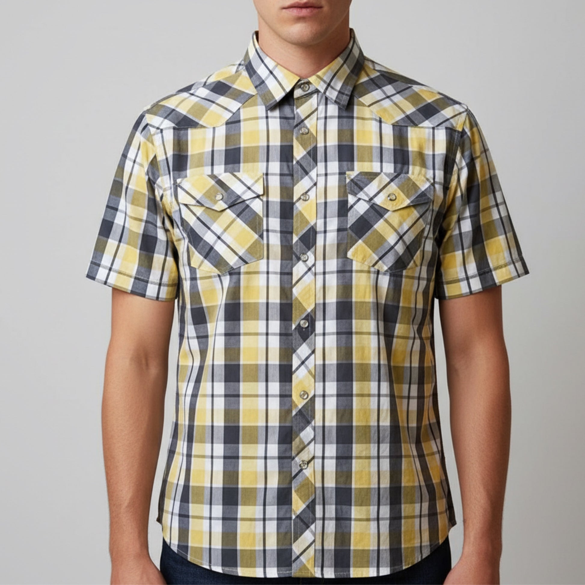 BANNED Mustard Plaid Short Sleeve Button Shirt