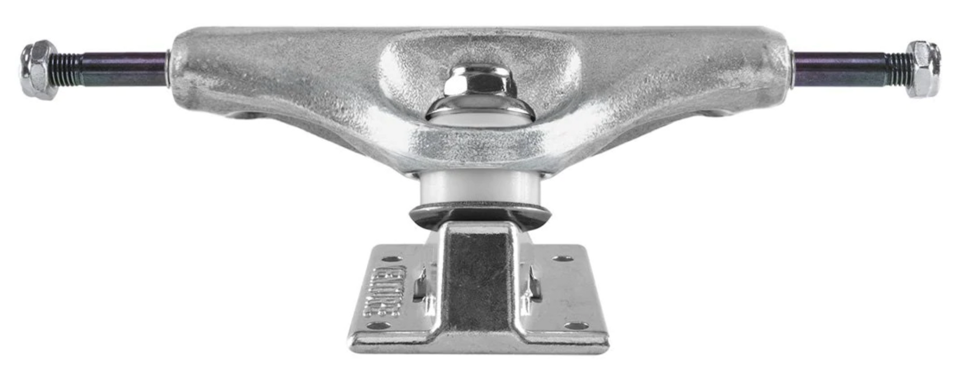 V-TITANIUMS: The lightest trucks just got lighter Extra Light Hollow Kingpins Lightweight & Strong Titanium Axles V-stamped Forged Aluminum Baseplates