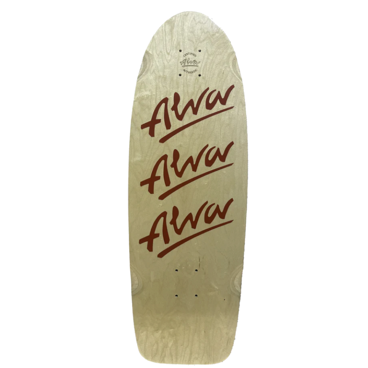 Released In 1979, and recognized as an instant classic, Alva's TRI-LOGO deck has been painstakingly reproduced with the correct dimensions and shape right down to the barrel style wheel wells.