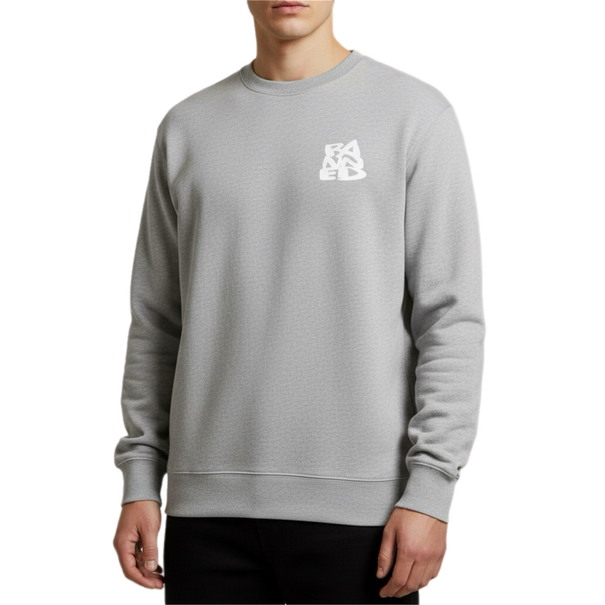 Banned stacked logo 4" front left chest of crew neck