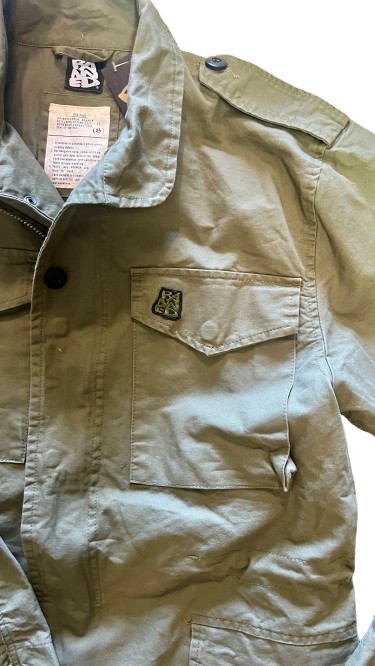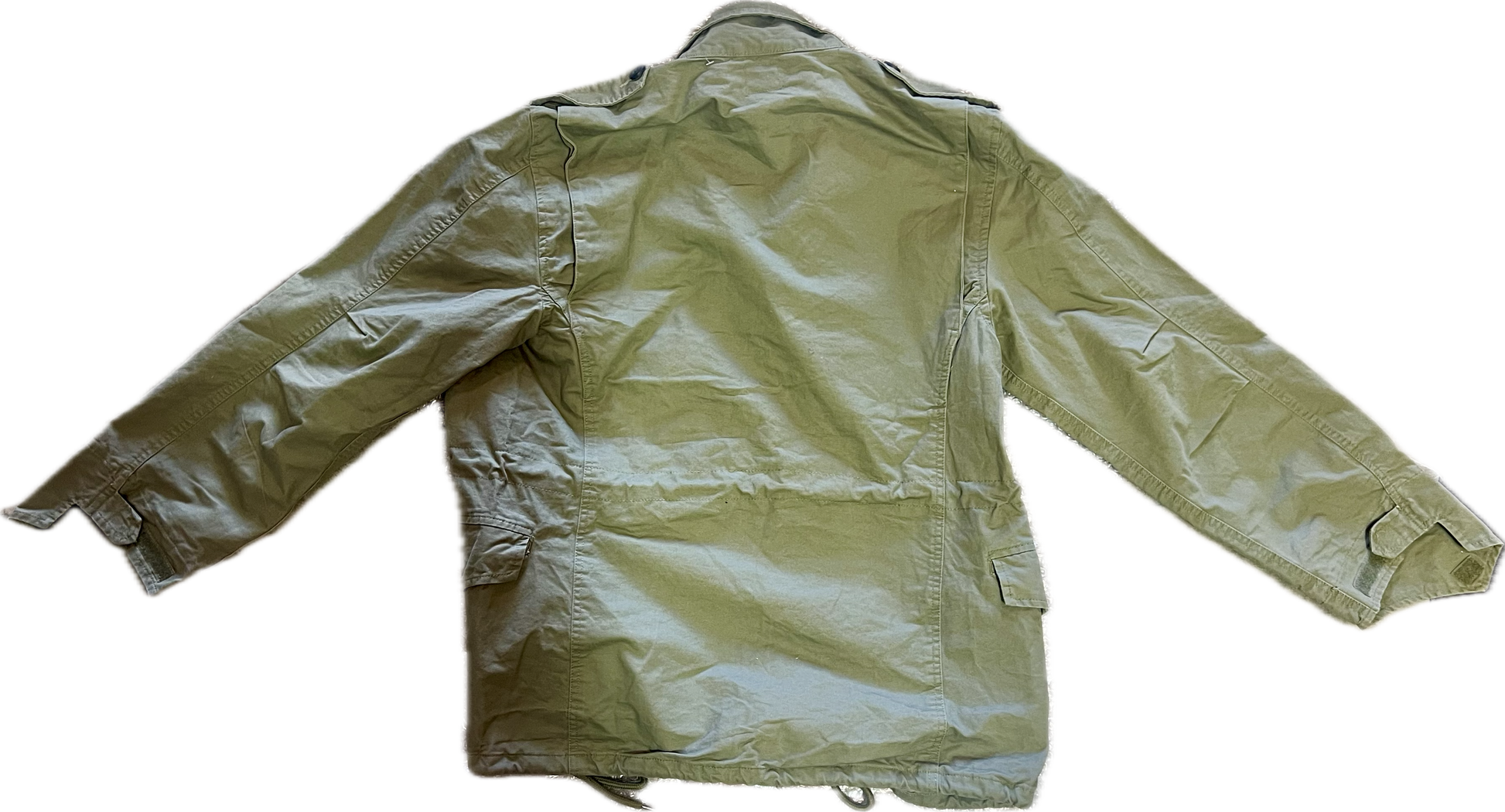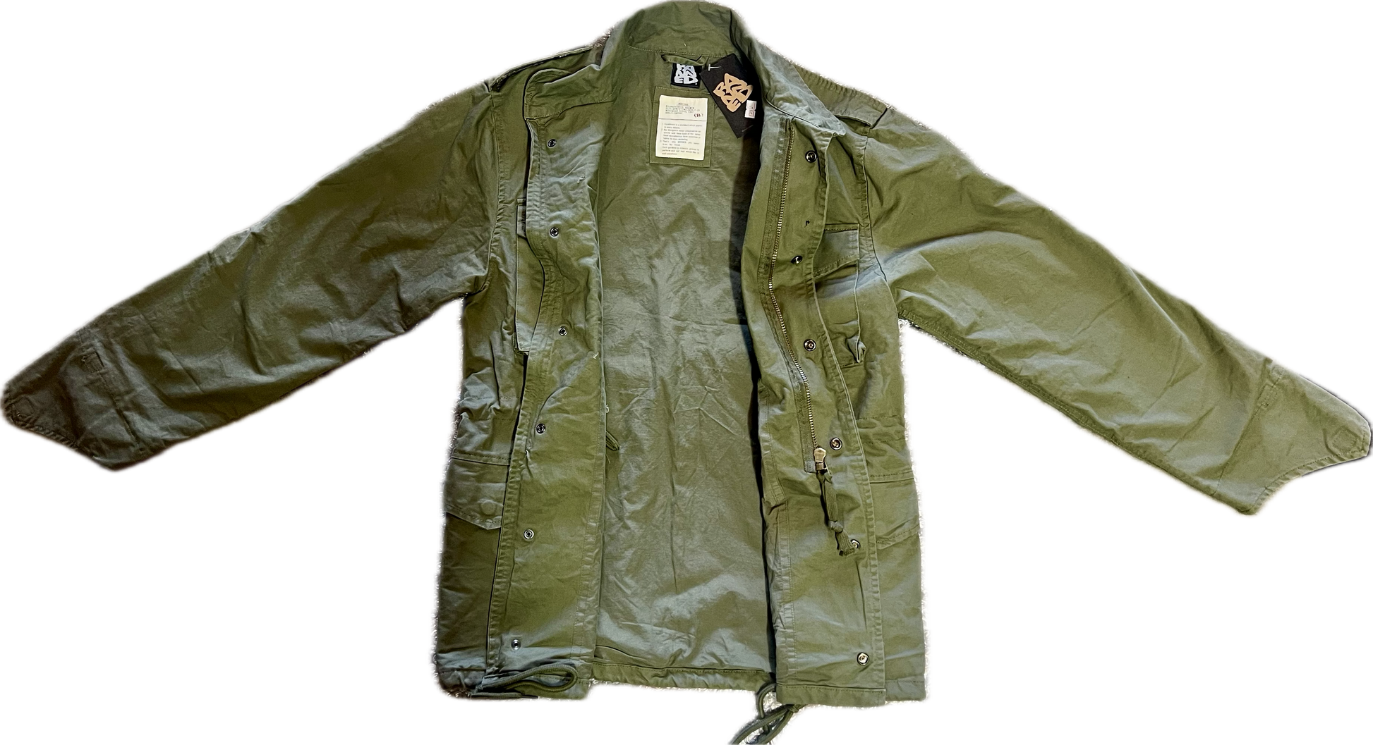 Olive drab cotton canvas, created and designed exactly like the classic Vietnam M65 field jacket.