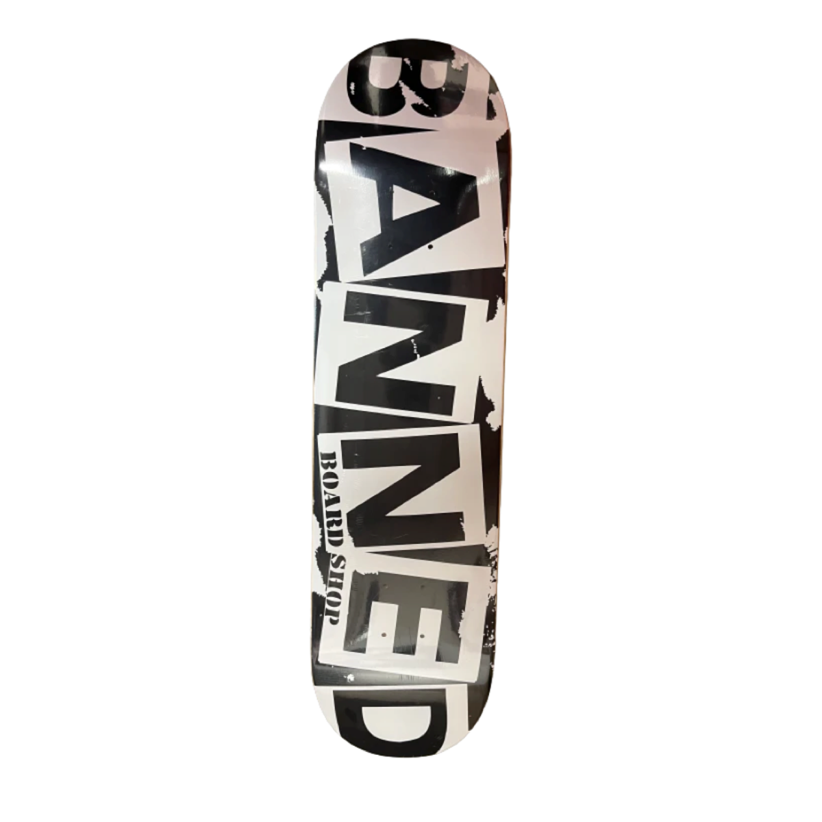 All BANNED skateboard decks are cold pressed. This method takes more time than a hot pressed deck but does not subject the wood to high temperatures that can weaken the wood fibers. The uncut decks are allowed to cure for 7 days in large stacks before finishing.