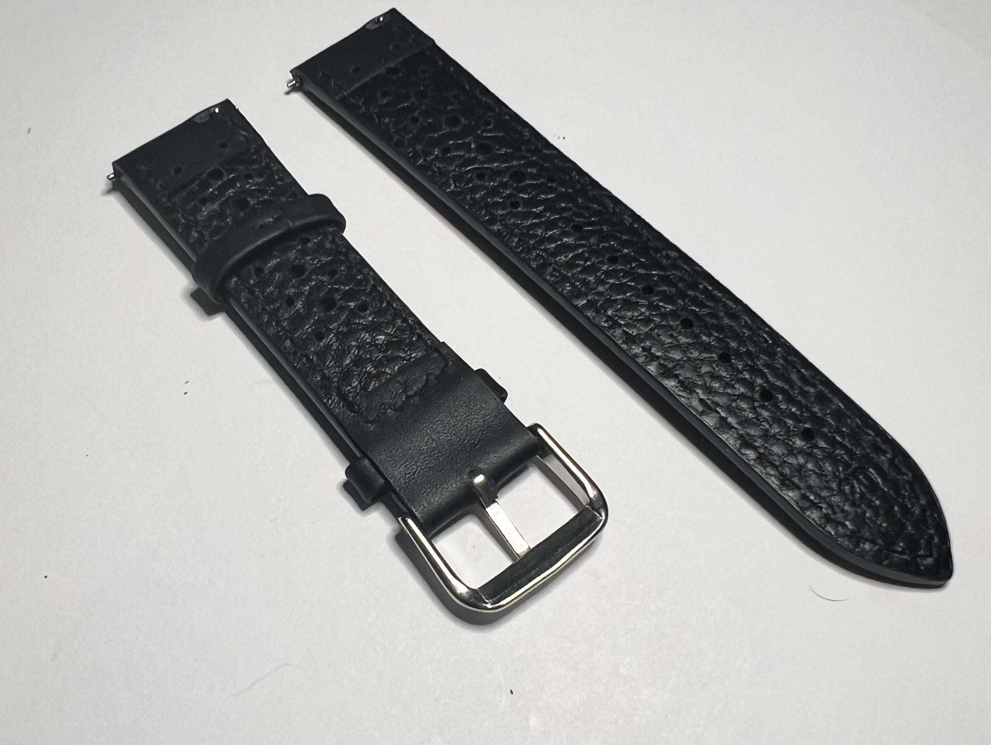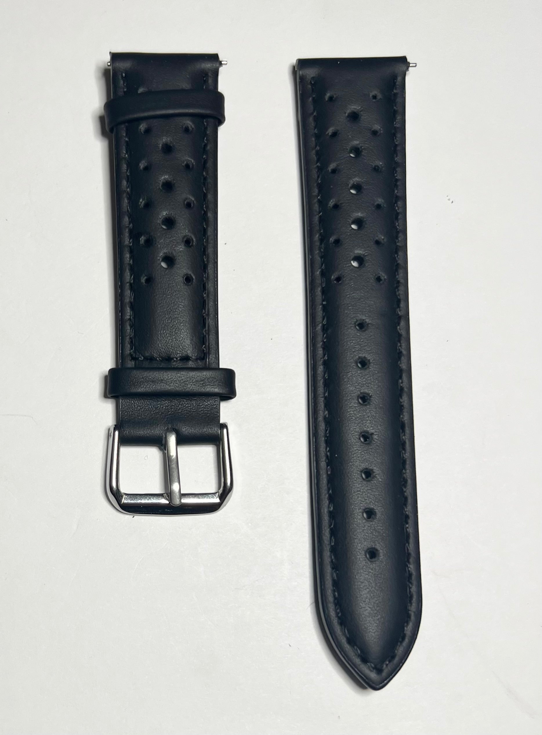 Black Leather Perforated Racing Quick Release 20mm Strap