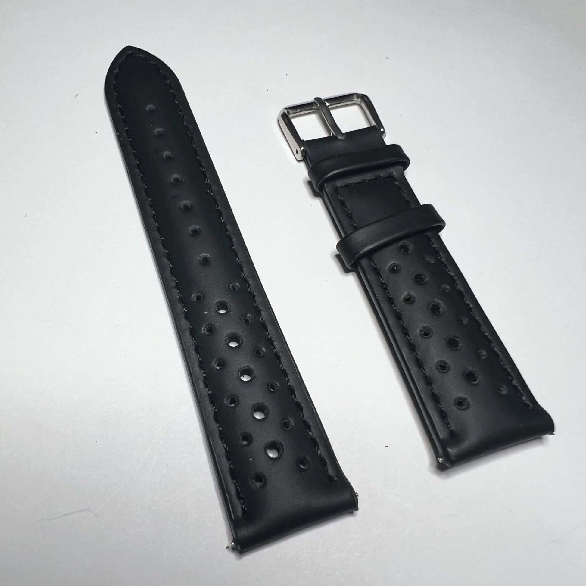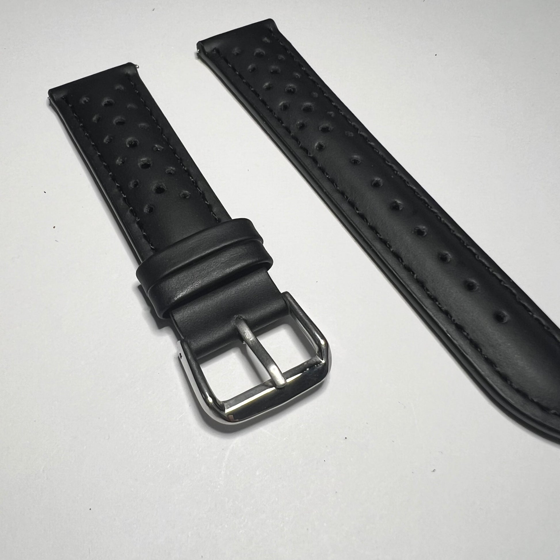 Black Leather Perforated Racing Quick Release 20mm Strap