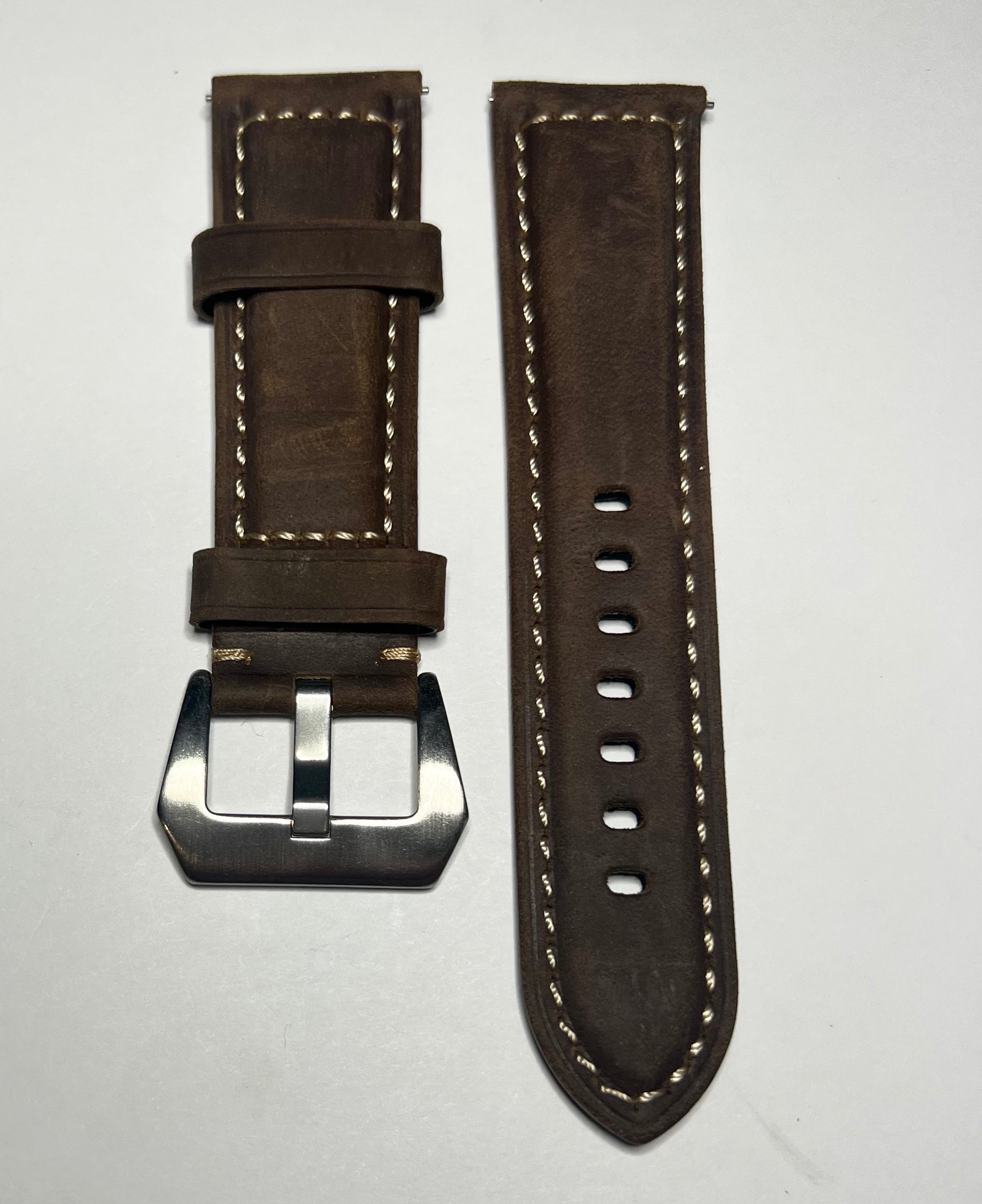 Brown Crazy Horse Leather White Stitch 24mm Quick Release Strap