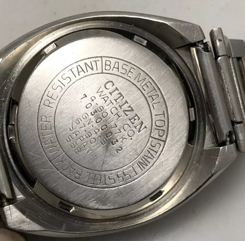 Back Case Marking - WATER RESISTANT BASE METAL TOP STAINLESS STEEL BACK CITIZEN WATCH CO. 4-901193K 01100094 GN-4-S 67-9020 JAPAN GPB
