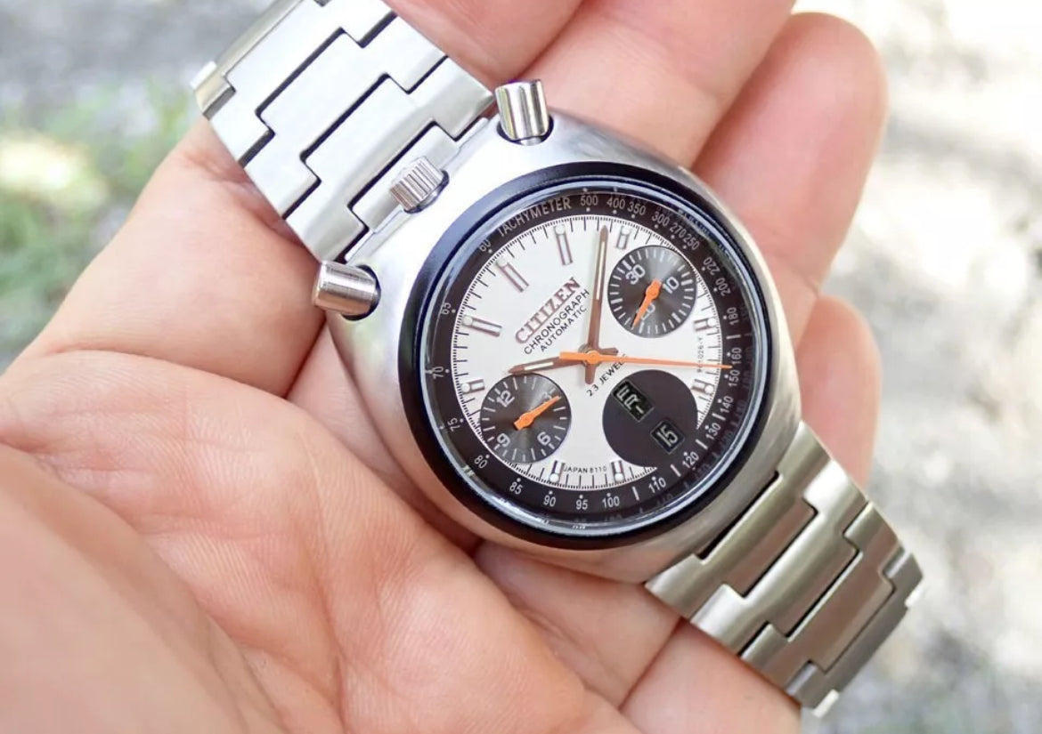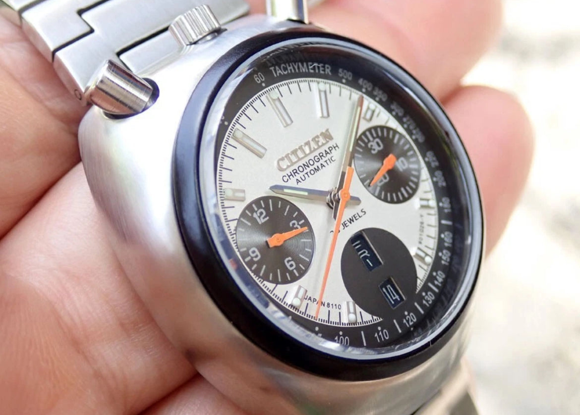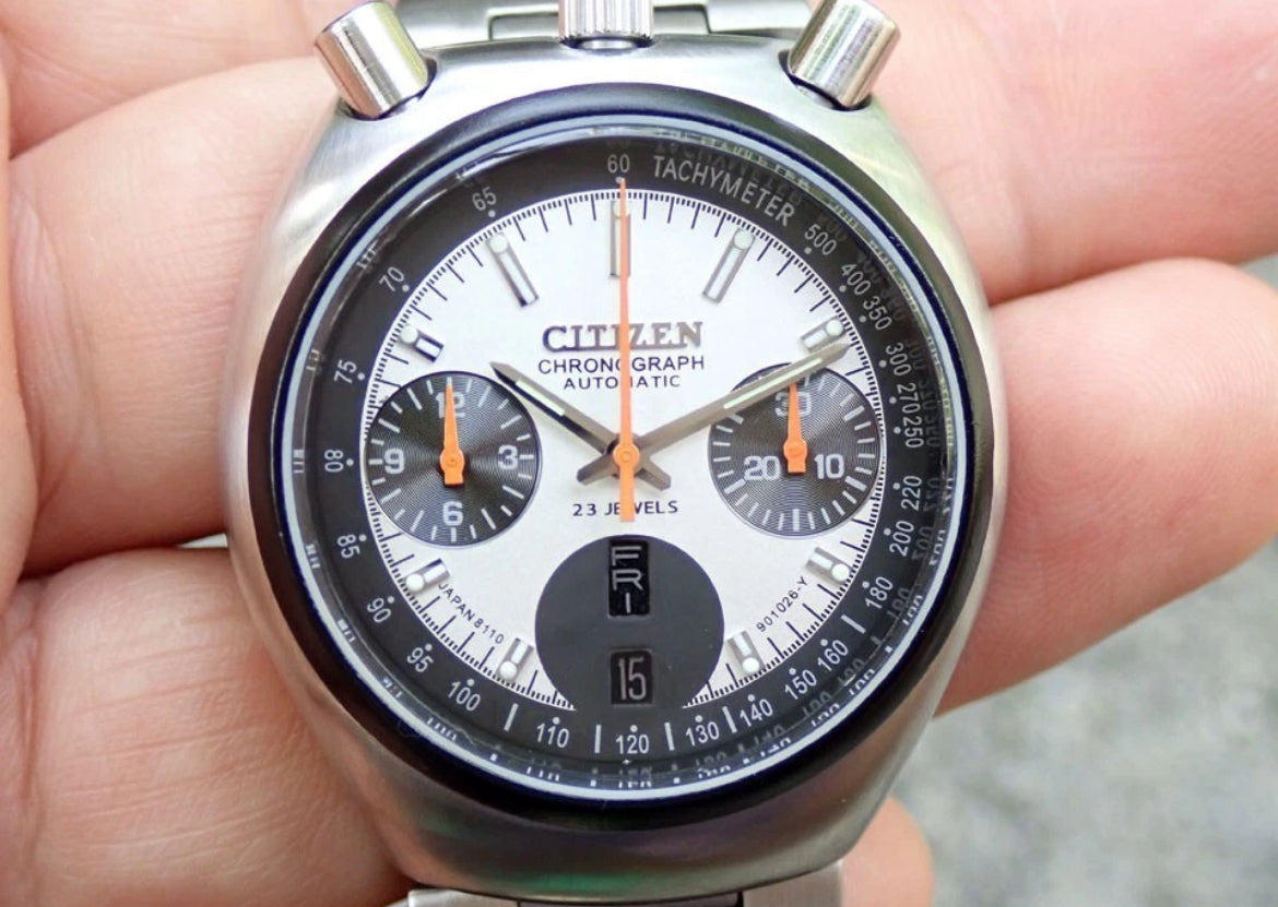 Citizen 8110 Bullhead Automatic Flyback Chronograph Stainless Steel Hollywood" Silver / White dial 1970’s Wristwatch