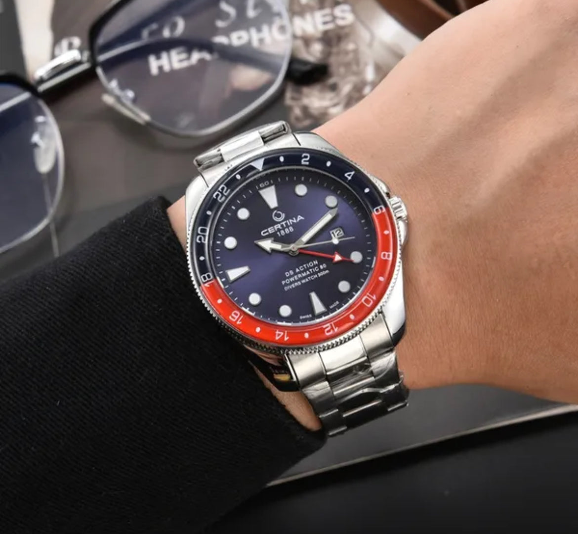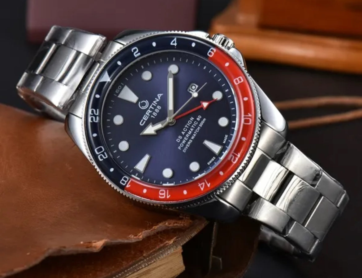 Luxury Cert. DS Action Mod Blue Dial Pepsi Bezel Quartz Movement Steel Bracelet Watch