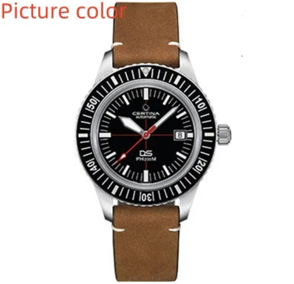 Luxury Cert. DS Mod Black Dial Quartz Movement Leather Strap