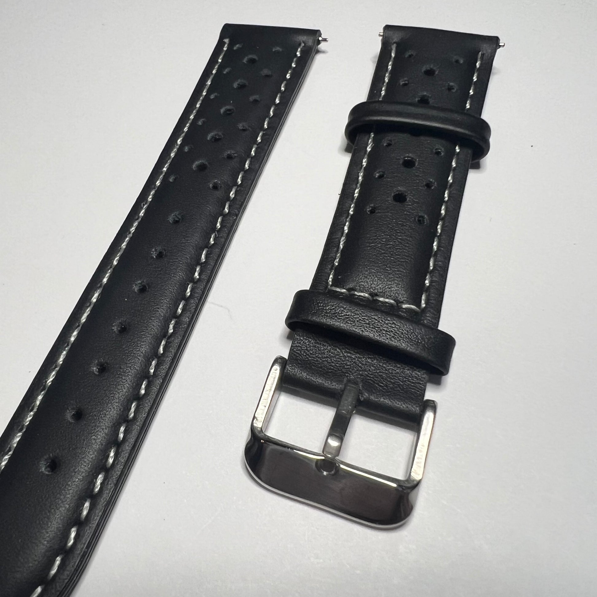 Black Leather white Stitching Perforated Racing Quick Release 20mm Strap