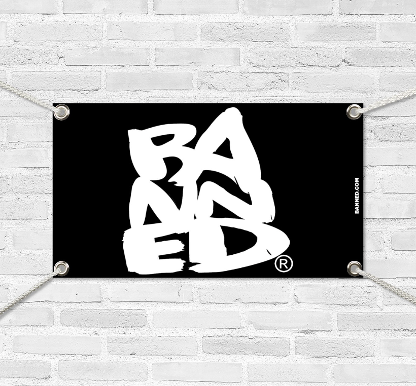 Thick BANNED vinyl banner with grommets