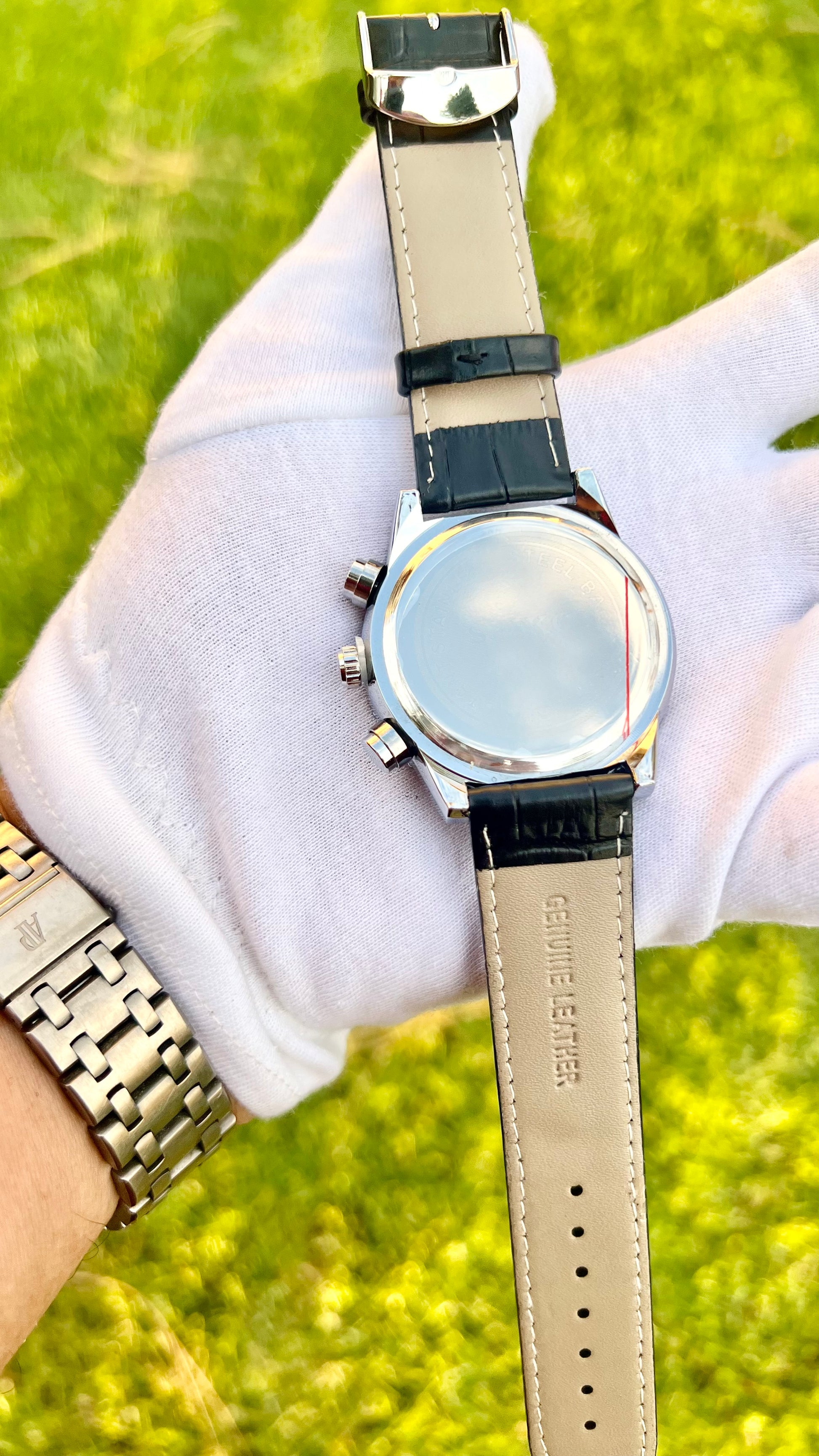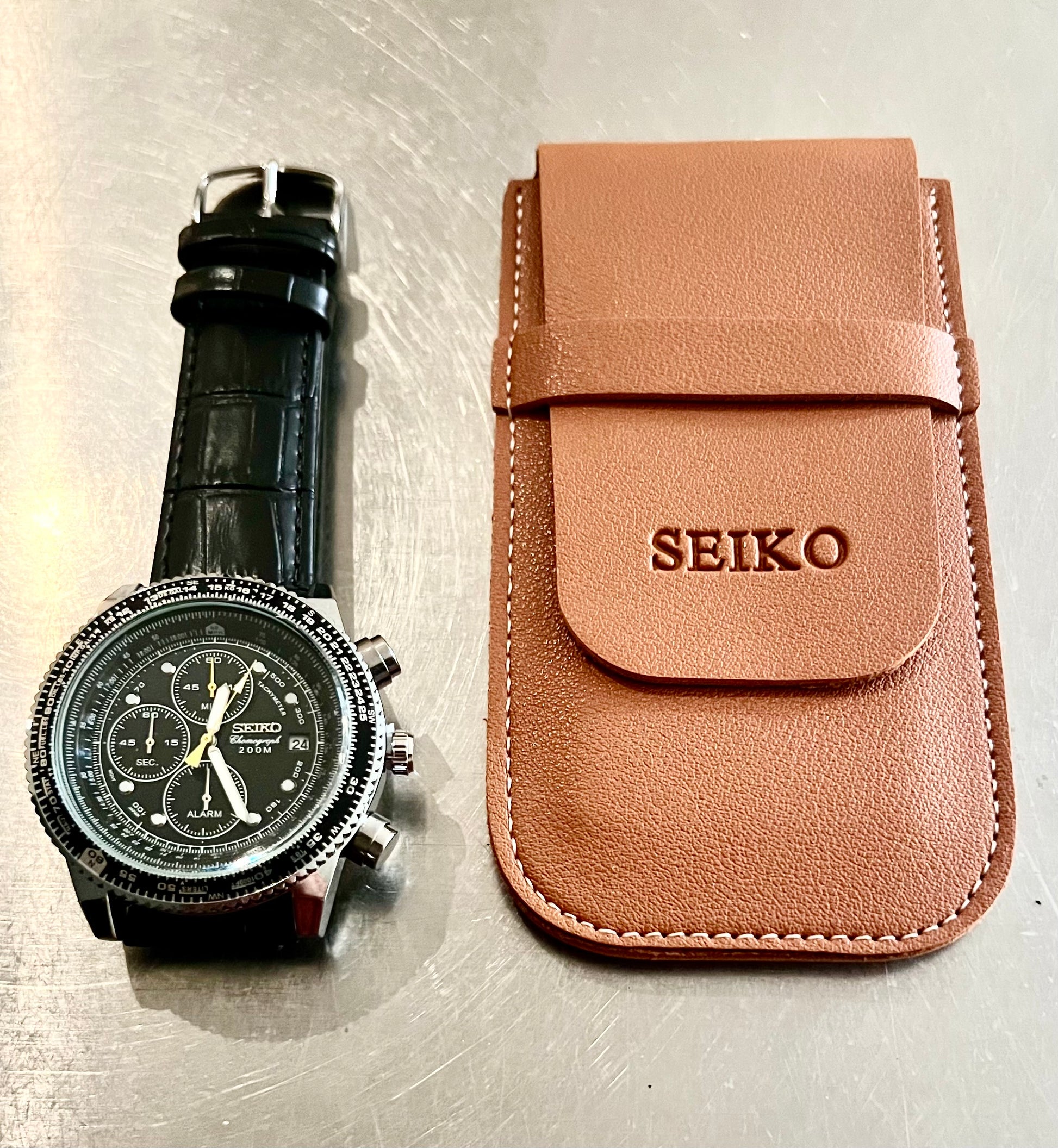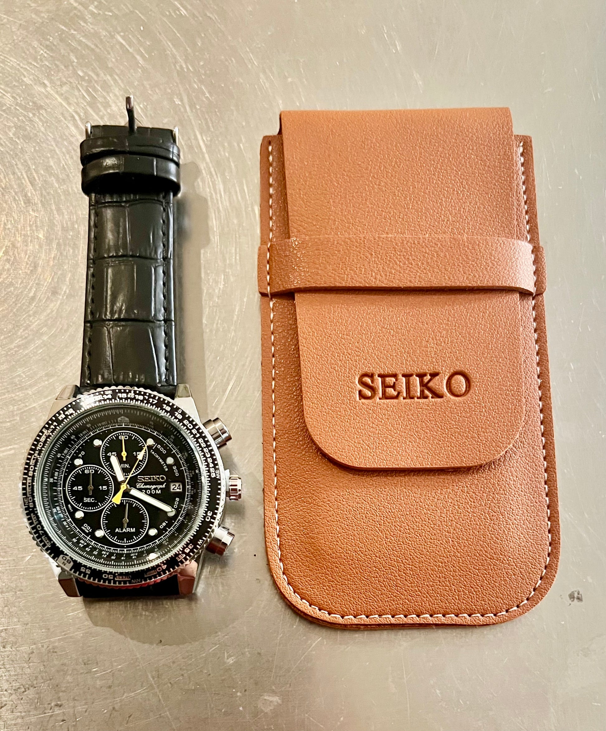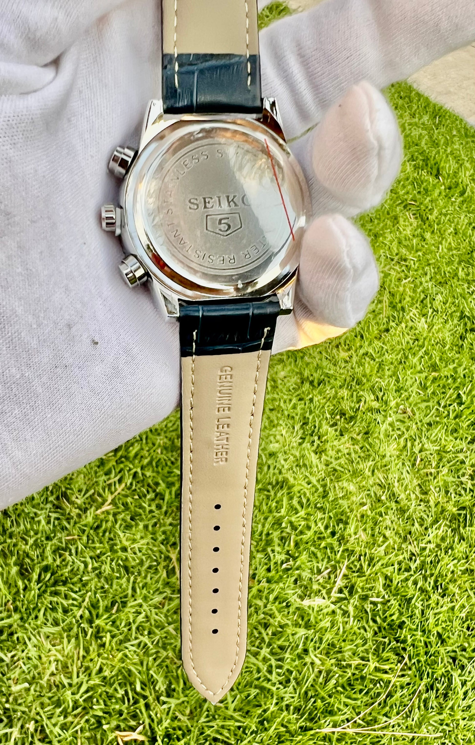 Seiko Chronograph Speedtimer 43mm Quartz Movement Black Dial Bezel Leather Watch