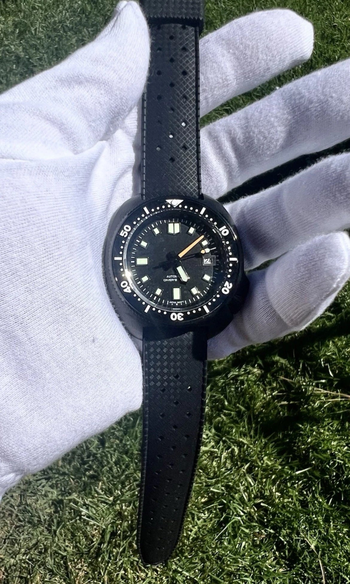 (Seiko) King Turtle Titanium Case Captain Style NO LOGO All Black PVD Diver 47mm Automatic Watch
