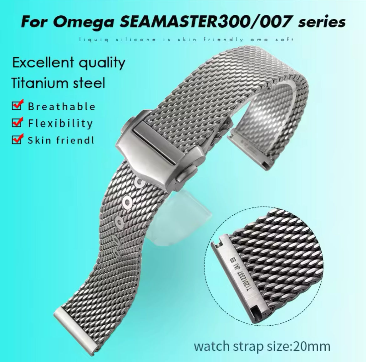 TITANIUM Mesh 20MM Fits Omega Seamaster 300 and others NO Logo Milanese Bracelet