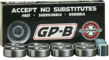Independent Trucks Genuine Parts Bearing 5s. Each set of Independent bearings come with a high quality dust proof shield, serviceable shieldless back, and a all new more durable super cage design with updated races.