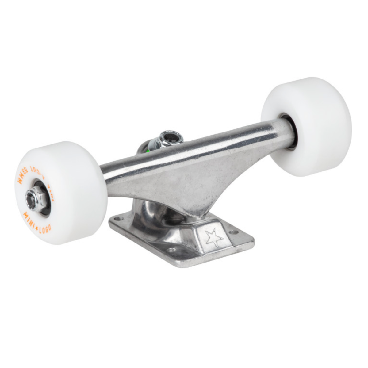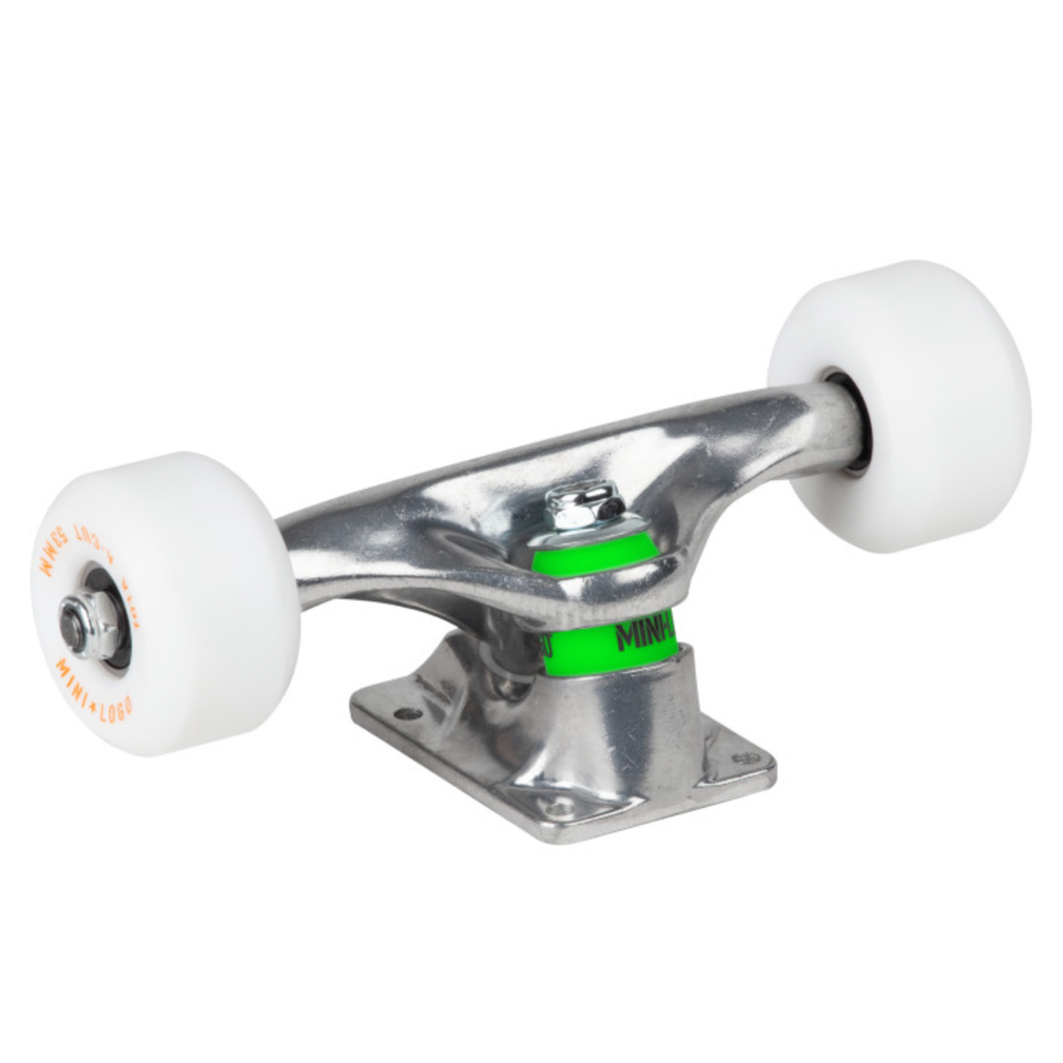 Mini Logo™ high-performance trucks combine strength, stability, and smooth turning in a lightweight design with premium alloys, high-rebound bushings, and precision axles. Developed and tested at Skate One, the shape, materials, and finishes have been refined for MILITANT skaters right from the first turns and grinds -- No break-in time needed!
