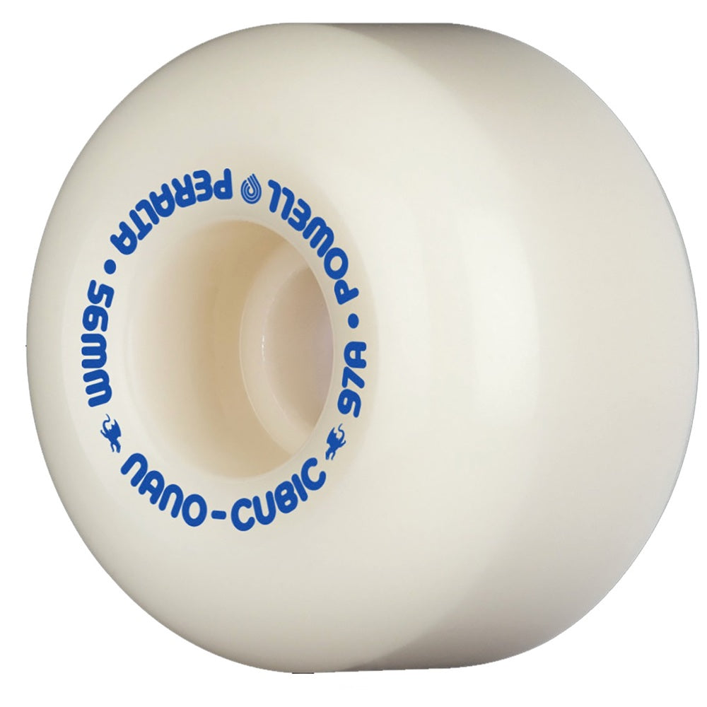 - One (1) set of 56mm Powell Peralta Dragon Formula Nano Cubic White Skateboard Wheels 37mm CP - 97a; includes four (4) wheels