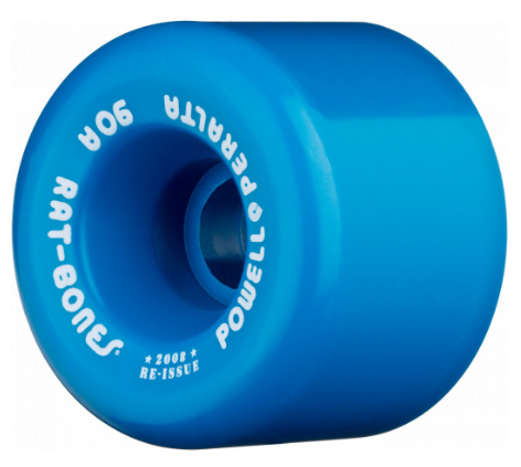 The Rat Bones wheel was actually a "Rollerbones" product. Rumor has it that while visiting the company one day, Steve Caballero saw the wheels and wanted to try them out on his skateboard. He liked them. The wheels were much lighter than Cubics and Mini Cubics which were eventually phased out in favor the newly dubbed "Rat Bones."