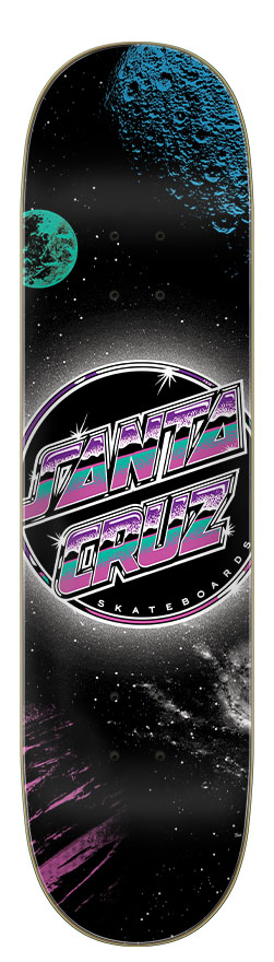 Santa Cruz Skateboards Chrome Dot Space Everslick deck. Everslicks are the fastest sliding slick boards out and 5 times stronger than a standard 7 ply deck. The unique graphic application process yields bright colors and high contrast graphics that look great longer.