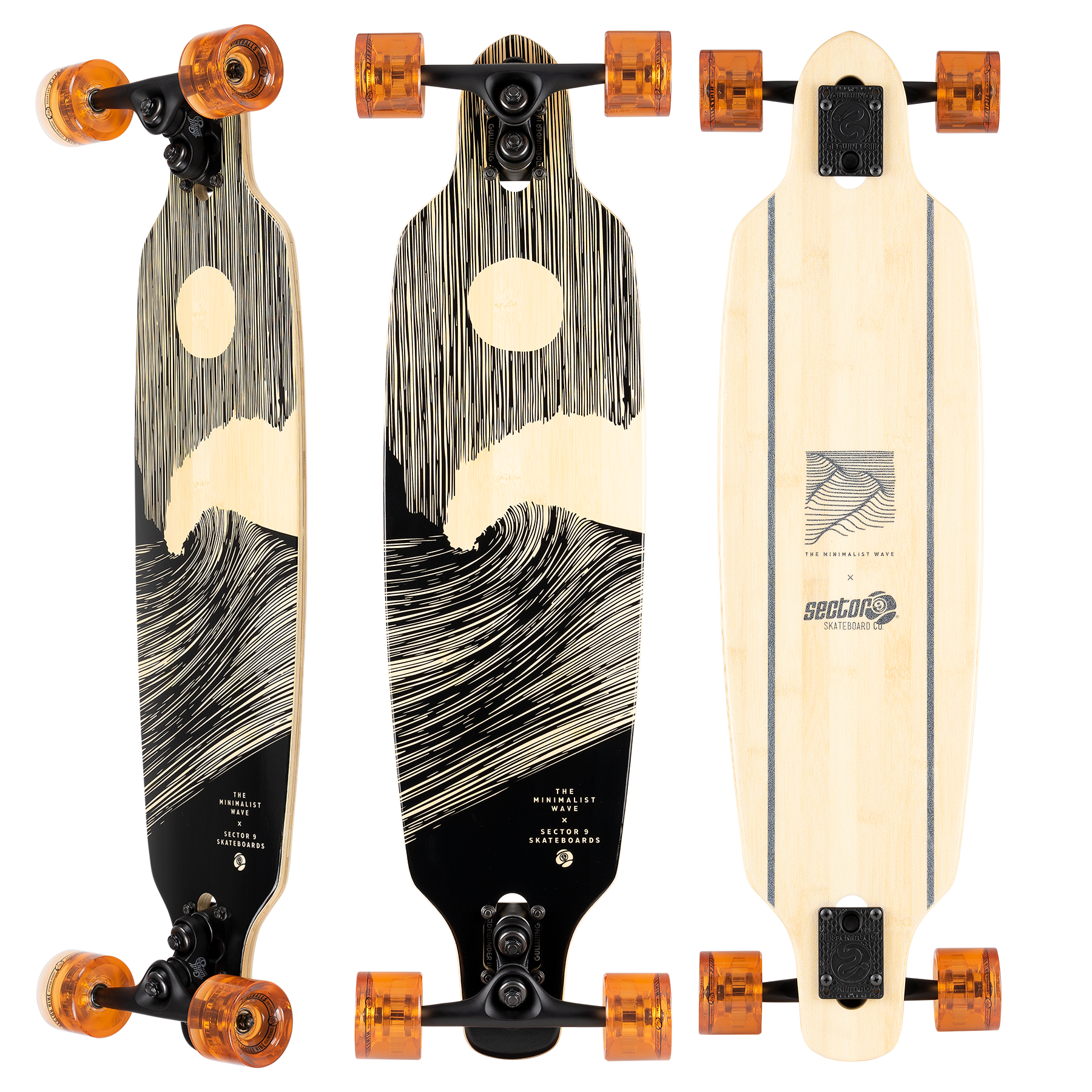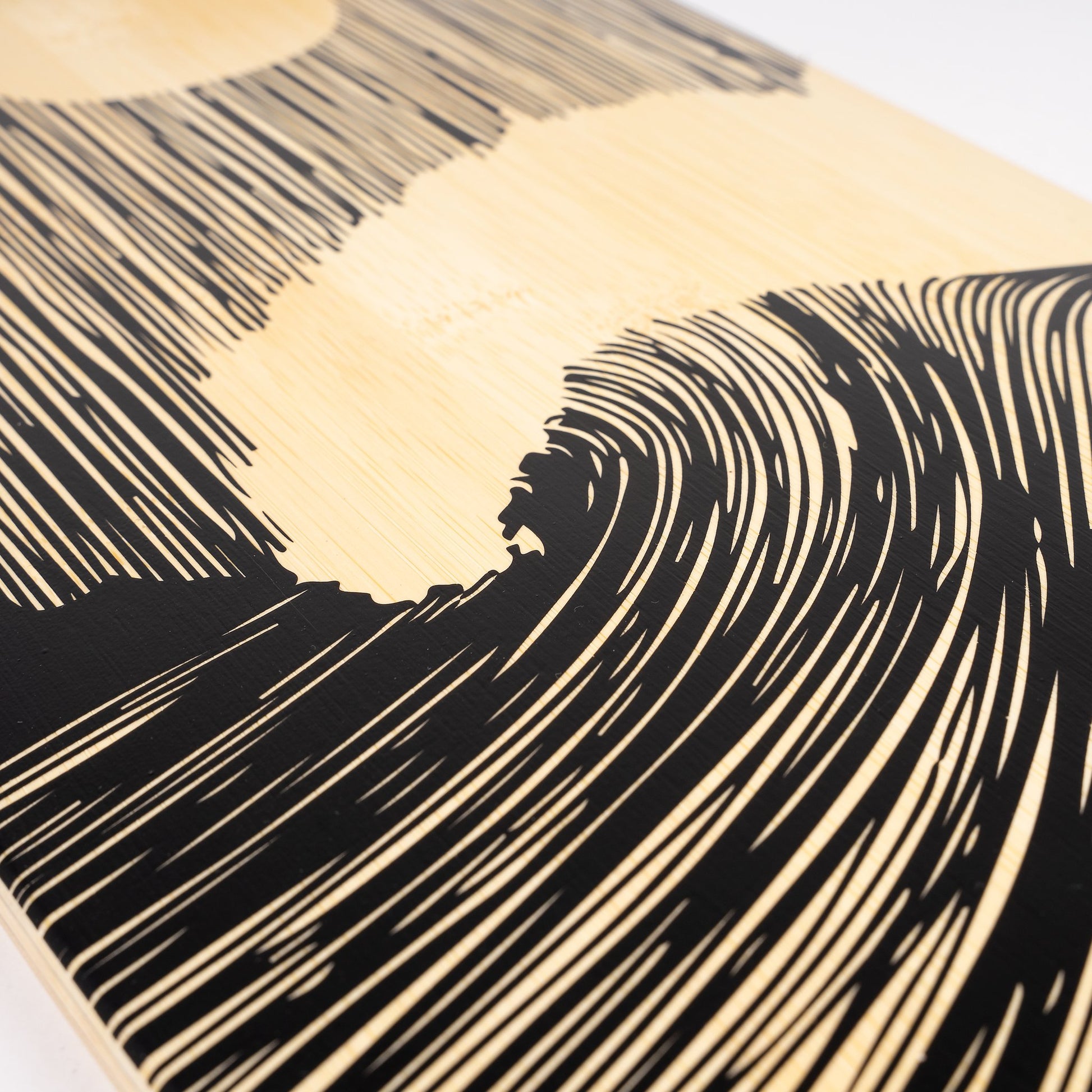 Sector 9 has decided to once again partner on an artistic collaboration for a Bamboo Collection with French artist, The Minimalist Wave. Following a ritual process, he obsesses over the patterns of a wave crossing the ocean, as it evolves constantly. A traditionalist artist utilizing pen and ink for his drawings, his work is an invitation to find yourself in the heart of the ocean, to get lost and to discover imaginary worlds. The simple black, minimalist illustrations provide a beautiful contrast to the natural Bamboo plies, creating decks worthy of hanging in a gallery just as much as they are riding to the beach.