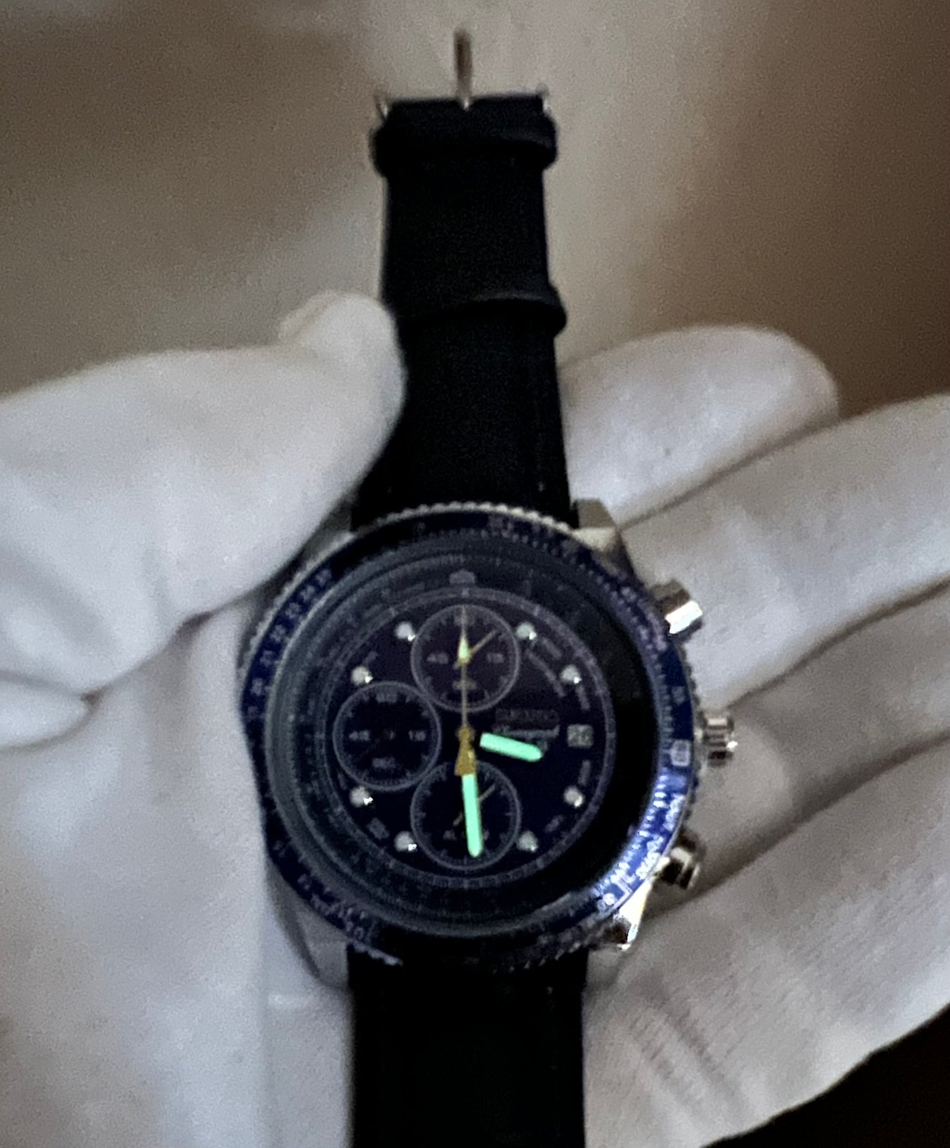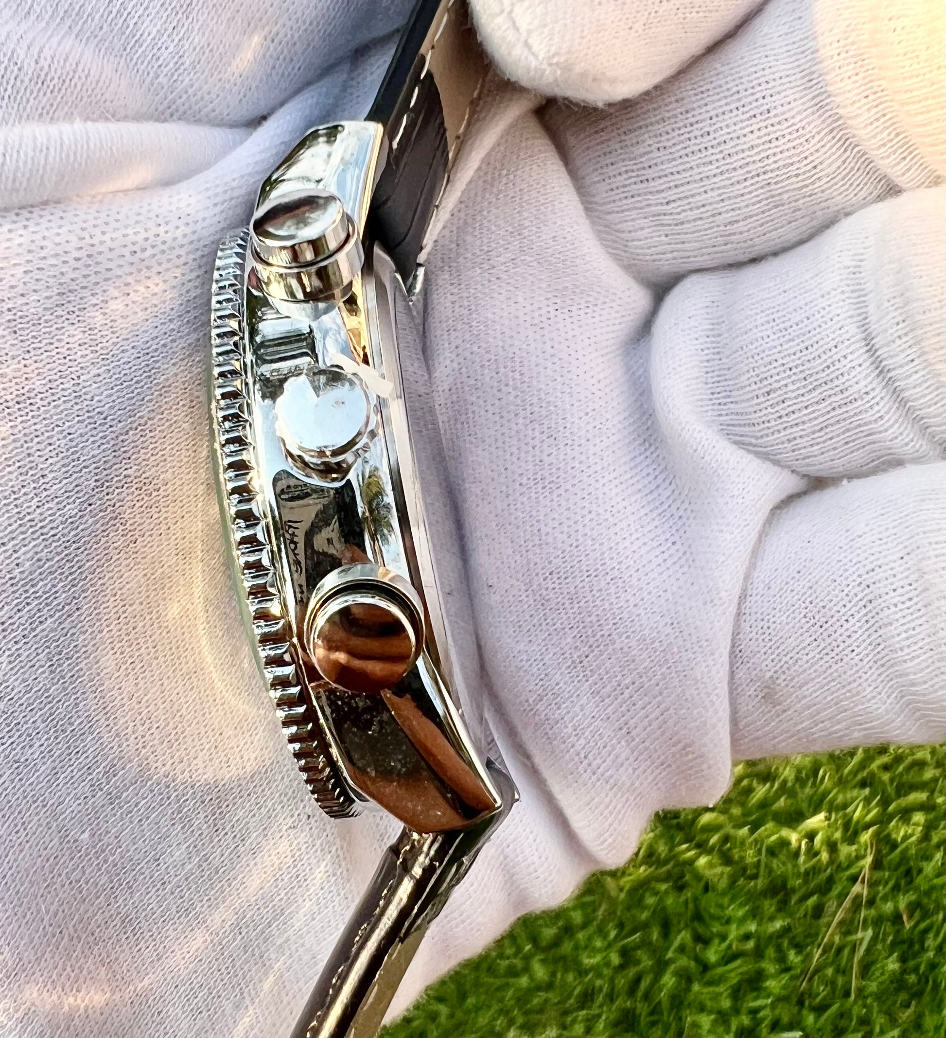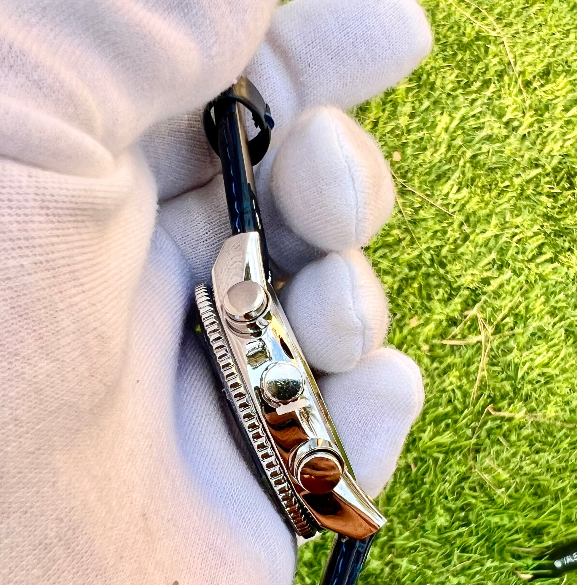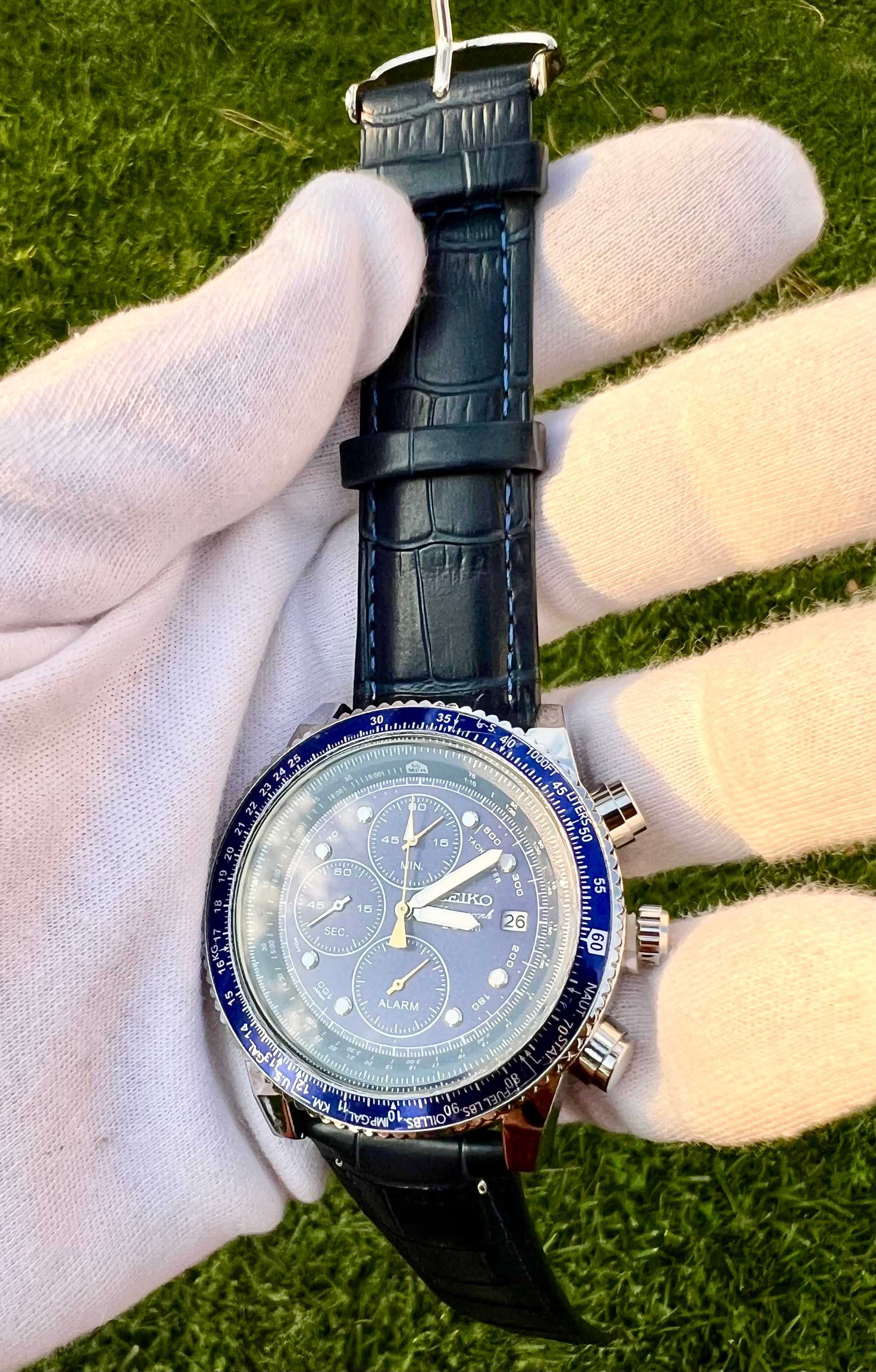 Seiko Chronograph Speedtimer 43mm Quartz Movement Black Dial Bezel Leather Watch