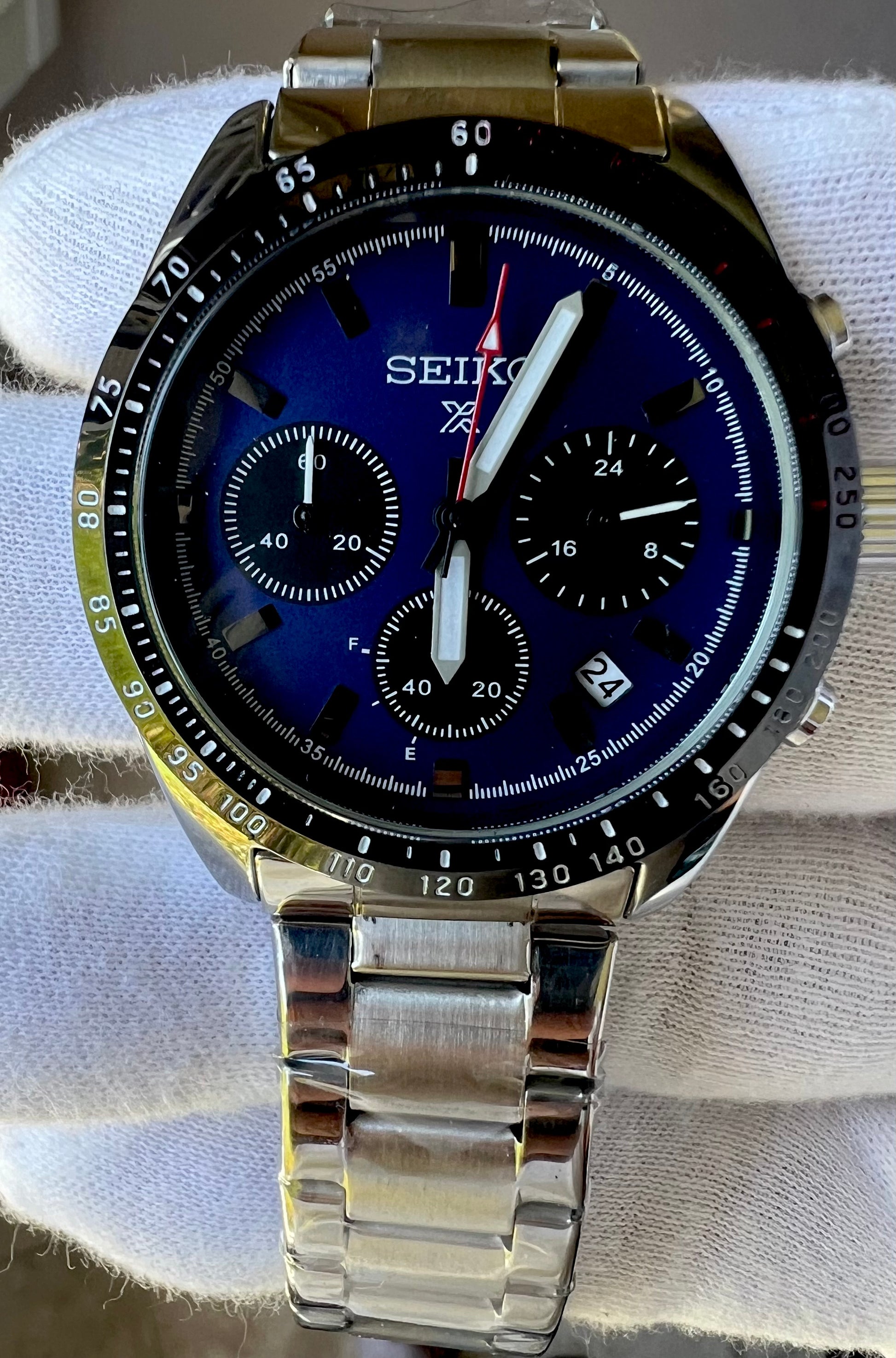 Seiko Speedtimer Chronograph 40mm Quartz Stainless Steel Blue dial Watch
