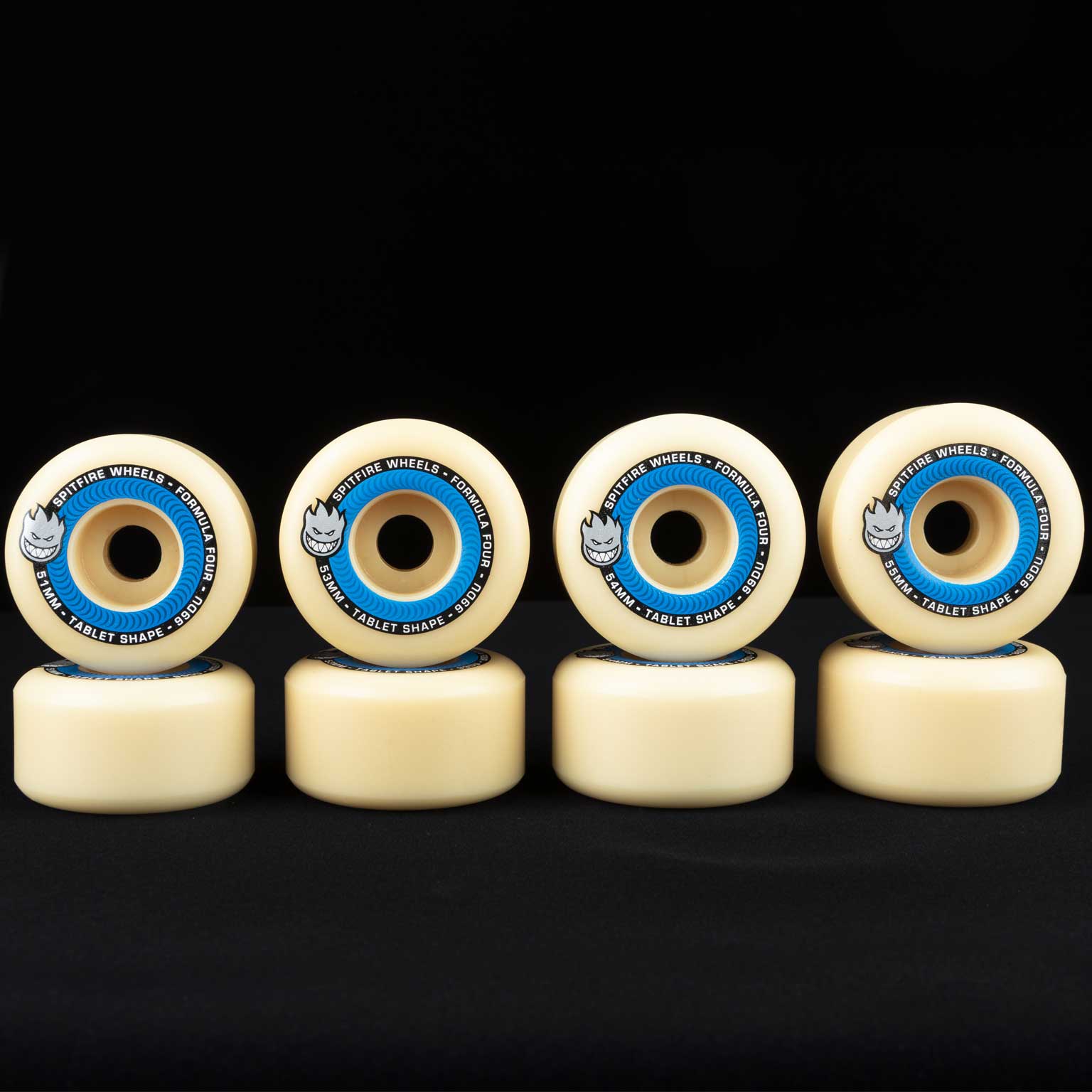 FORMULA 4 - Unbeatable lasting performance SPITFIRE urethane. Fast as hell. Long lasting, abrasion resistance, smooth anti-stick slide with a controllable grip. Guaranteed.