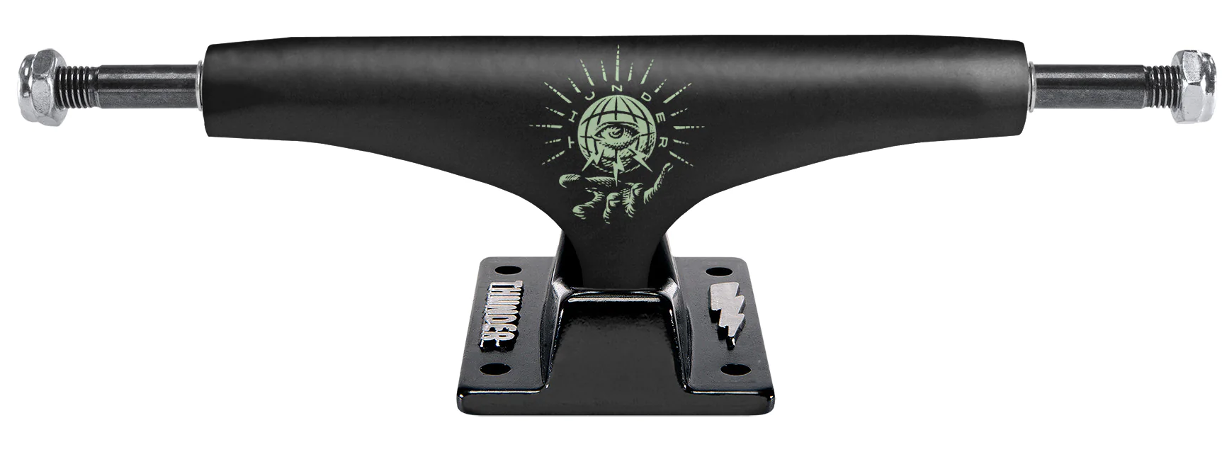 Glow in the dark graphic print. Glow in the Dark 90A bushings, hollow kingpins and Thunder Lights black baseplates.