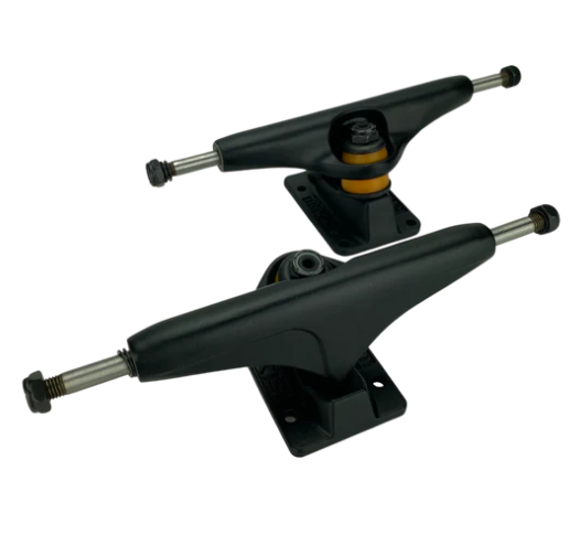 The Axis is the newest addition to the Tracker line. Keeping the classic look, we steepened the pivot angle creating a quicker turning radius, dropped the hanger height and re worked the yoke for better king pin clearance on grinds.